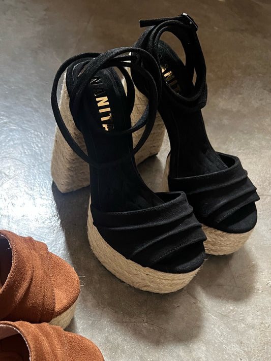 Sandalias Lucy cuña de soga negra